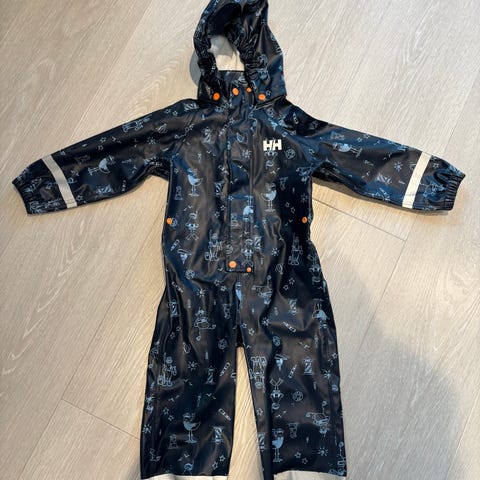 Helly Hansen Helox regndress i svart, størrelse 98. Dressen er egnet for utendørs bruk i vått vær. Inkluderer justerbare seler og reflekser for økt synlighet.