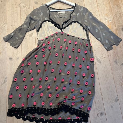 Odd Molly hverdagskjole i størrelse M, farge grå. Kjolen har lange ermer og dekorative broderidetaljer. Den har snøring i front og er laget for kvinner.