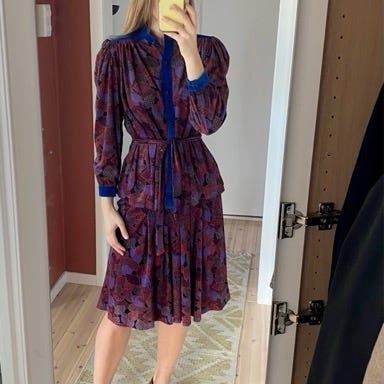 Drakt i semsket skinn fra Fital Danmark, fra tidlig 70-tall. Pent brukt og i god stand.
