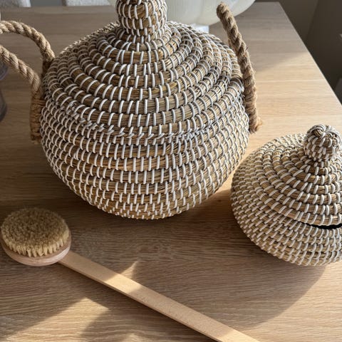 Esbada håndkleholder oval, den nederste armen må strammes innimellom, ellers veldig kjekk og praktisk