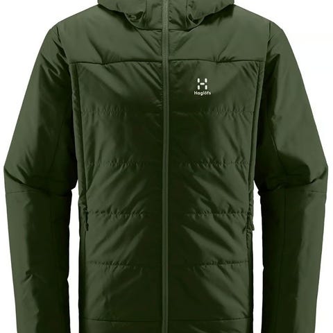 Haglöfs jakke i størrelse XL for kvinner. Jakken er svart og har justerbare mansjetter. Den har hette og er laget for utendørs bruk.
