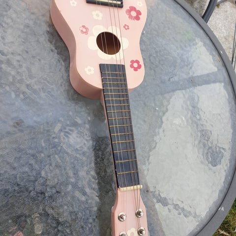 Det er en lekegitar, og egner seg ikke dersom man skal lære seg å spille.