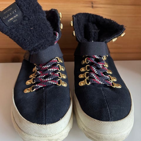 GANT vinterstøvler i størrelse 38 laget av brunt semsket skinn. Støvlene har en hvit såle med mønster for bedre grep. Passer for kaldt vær og vinterbruk. Dessverre får jeg ikke brukt dem likevel fordi jeg måtte ta i bruk spesialsåler. De har derfor ikke vært i bruk. Hentes sentralt i Moelv—-evt sendes mot porto. Se gjerne mine andre annonser. Samsender