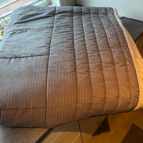 Sengeteppe i beige velour fra kid. Vaffelmønster. Nypris ca 900,-