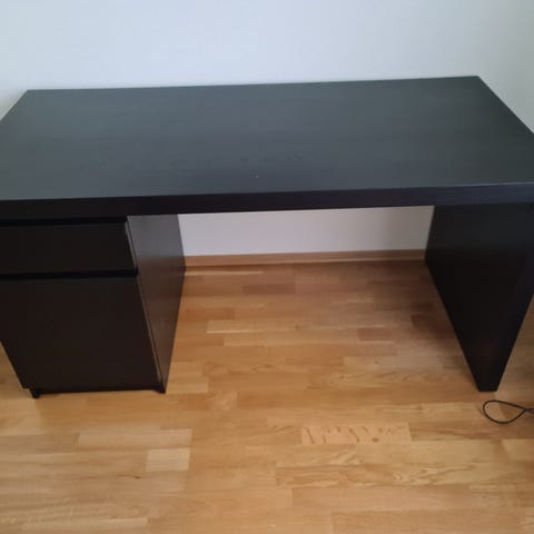 Sort IKEA skrivebord med to skuffer selges rimelig. I tillegg er det en seperat skuffseksjon (35 cm lengde), total lengde inkl skuffeseksjon er 182 cm. Alt er i god stand - selges rimelig ved rask henting.