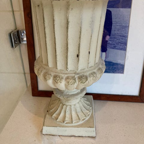 Begge 20 cm høye, ene med 9 cm høyt lokk.