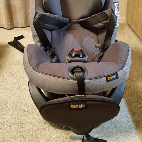 BeSafe Barnesete i svart farge. Barnesetet er designet for barn med en størrelse opp til 25kg. Setet har sikkerhetsfunksjoner tilpasset barnets behov og er laget med materialer som gir komfort og beskyttelse under bilreiser. Bestemor kjørt ca 10-15 turer. Pent brukt ingen synlige merker.