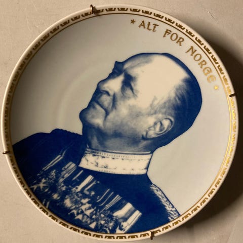 Porselenstallerken med bilde av Kong Olav V