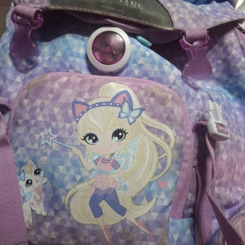 Rosa Beckmann active air sekk i størrelse 1.-3. klasse. Sekken er pent, men synlig brukt.