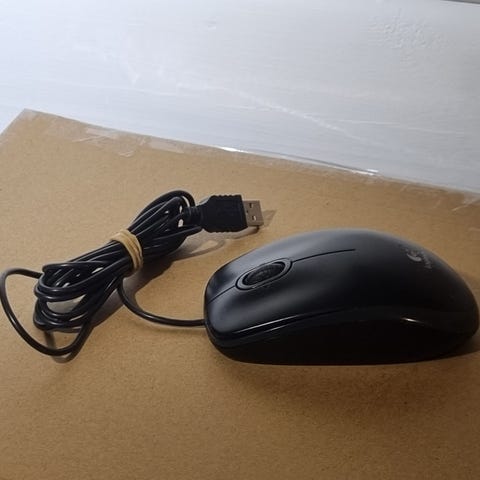 Logitech kablet datamus med USB-tilkobling i svart farge. Passer til bruk med PC og andre enheter med USB-port. Enkelt design med to knapper og rullehjul.