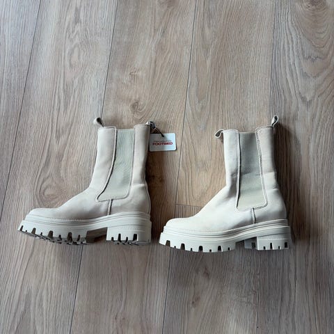 Tamaris støvler i størrelse 36, med sølvfarget overflate. Støvlene har glidelås på siden for enkel på- og avkledning. Innsiden er foret med mykt materiale som gir varme og komfort. Sålen er tykk og flat, egnet for daglig bruk i kaldere vær.