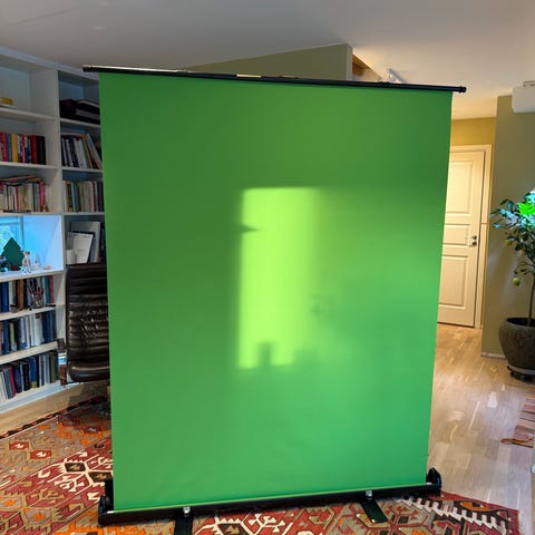 Green screenen er solid og enkel å bruke, og tar minimalt med plass når den er pakket sammen. Et godt valg for deg som ønsker en profesjonell bakgrunn uten å måtte montere noe permanent.