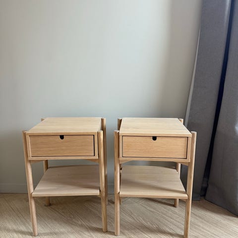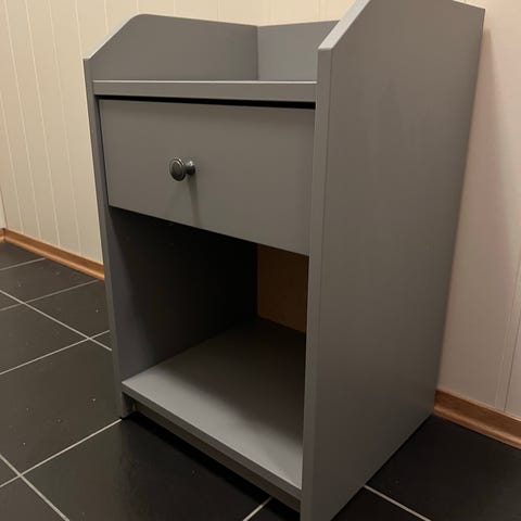 Selger et OLDERDALEN nattbord i fargen grønn/furu. Møbelet er helt nytt – kun montert, aldri brukt. Ingen merker eller bruksspor.