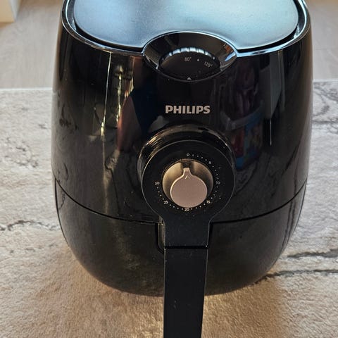 Philips Airfryer XL er en sort airfryer med en digital berøringsskjerm for enkel betjening. Den har et stort stekebrett som gir mulighet for tilberedning av større porsjoner. Enheten er designet for å steke mat med minimal bruk av olje, noe som gir et sunnere alternativ til tradisjonell frityrsteking.