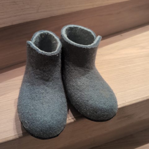 Gode og varme tøfler som er tova.Har elsket disse.stødige og gode på varme føtter.