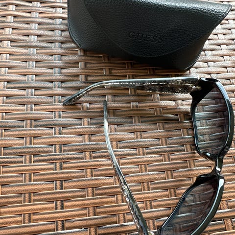 Frameless solbriller fra Quay, bruksmerker/riper i brilleglass.