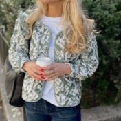 Blu blazer i rutemønster i sort, hvitt, grått + litt rosa.