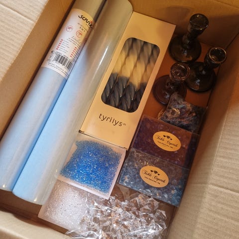 Duker til overs etter konfirmasjon. Alle er ubrukt. Den ene er kun åpnet på.