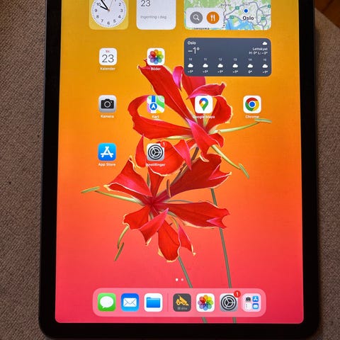 Det er ingen bruksmerker på iPad, og den er i svært god stand. Den kommer også med skjermbeskytter på.