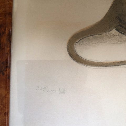 Trykk av Omar Andreen fra 1982. Pent vinter skogsmotiv med rådyr/hjort.