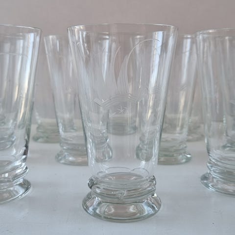 Glassene er 13 cm høye og 8 cm i diameter på toppen.