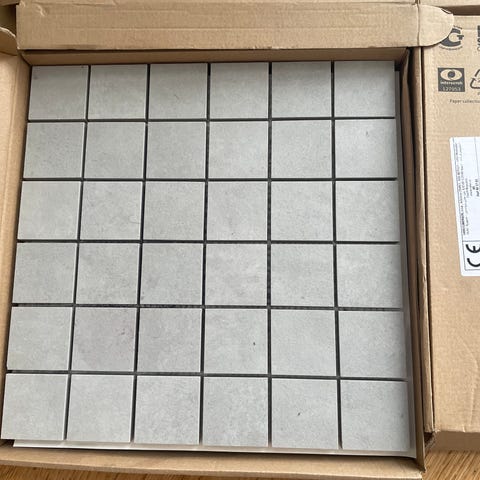 Alfabetiser Lys Blå mosaikkfliser med størrelse 23x23 mm per flis. Arkstørrelse er 208x298 mm. Fargen er lys blå. Flisene er montert på nett for enkel installasjon. Ca 1,5 m2