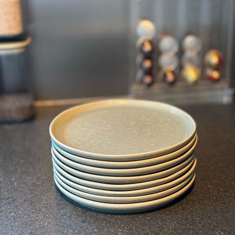3 stk IKEA frokost tallerken laget av keramikk i gråblå farge. Passer til daglig bruk. Ene tallerkene har et hakk i seg. Selges da vi har for mye som ikke brukes.