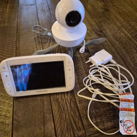 Pent brukt Motorola MBP500 babycall med video og dag-/nattmodus. Batterikapasiteten er blitt dårlig, men systemet fungerer fint med lader.