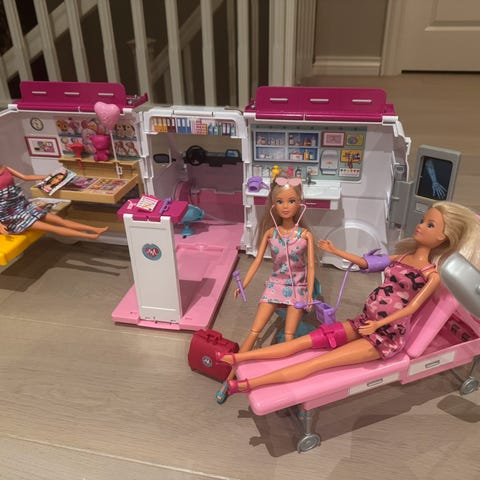 Barbie sykebil med dukker, én gravid Barbie med baby