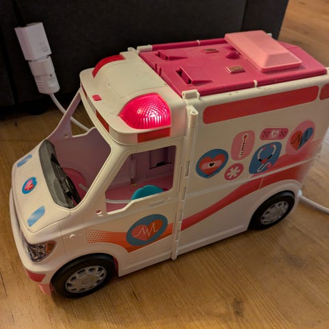 Barbie sykebil med to dukker. Pent brukt.