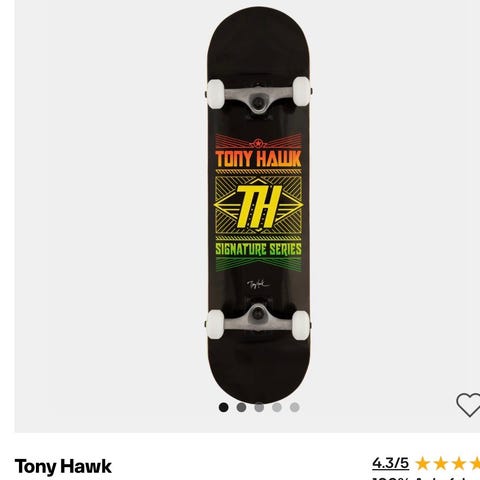 Tony Hawk Signature Series skateboard med sort dekk, størrelse 8 tommer. Komplett skateboard med hvite hjul og svarte trucks. Passer for skateboarding og triks. Nytt og ubrukt. Har eske så kan sendes