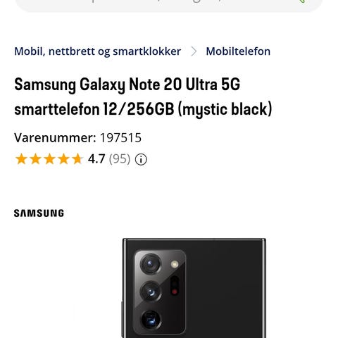 Nesten ikke brukt Samsung Note 20 Ultra 5G til salg