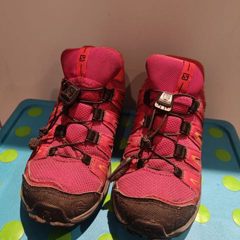 Salomon barn sko i størrelse 37, designet for jenter. Skoene er rosa med svarte detaljer og laget i materialer som gir god holdbarhet og komfort. Egnet for utendørs bruk og aktiviteter. Nye såler.
