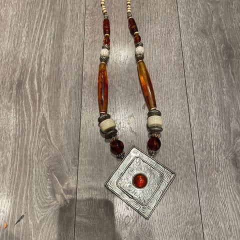 Vintage halskjede med store bakelittperler.