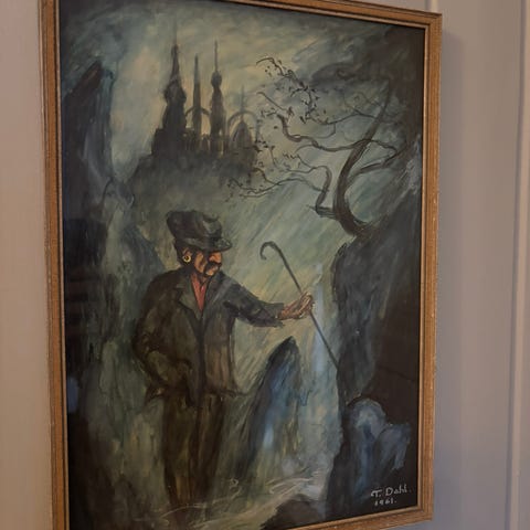 Truls Dahl er kjent for sine naturalistiske og visjonære malerier, og har hatt verk i Nasjonalgalleriet. Dette er et tidlig arbeid fra hans karriere.