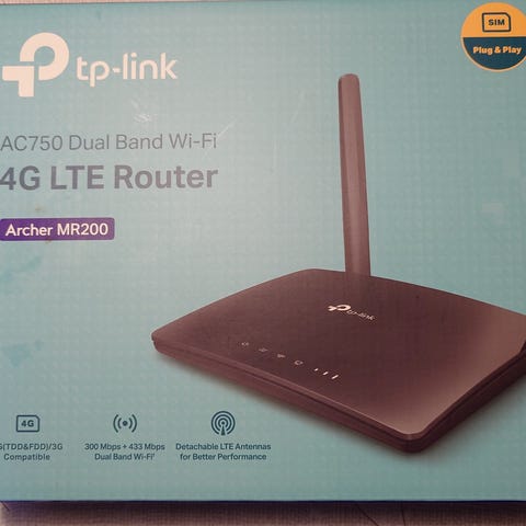 TP-Link Archer AX18 Router med fire antenner. Støtter trådløs nettverksteknologi for forbedret tilkobling og rekkevidde. Inkluderer strømadapter. Passer til hjemmenettverk og små kontormiljøer.