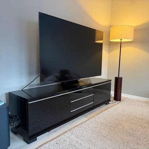 Selger en elegant TV-benk i to deler, hver del på 140 cm (totalt 280 cm bredde).