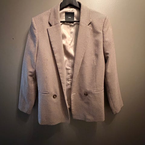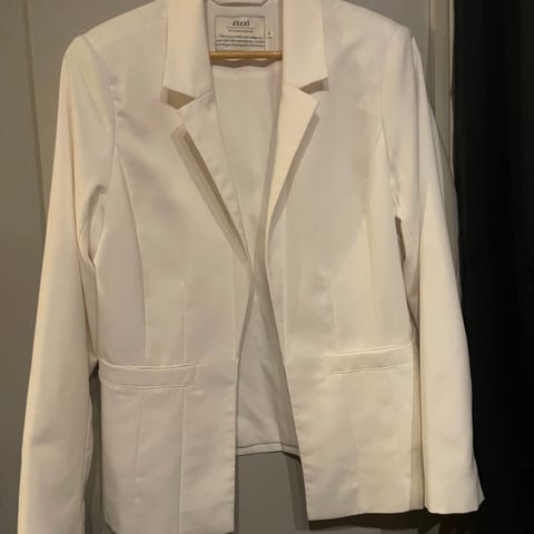 Zizzi Andre jakker i beige farge, designet for kvinner i størrelse 48. Jakken har en enkel knappelukking foran, to sidelommer og en klassisk krage. Den er laget av et materiale med tekstur som gir et stilrent utseende. Jakken er brukt kun 2 ganger. Har bukse i samme stoff .