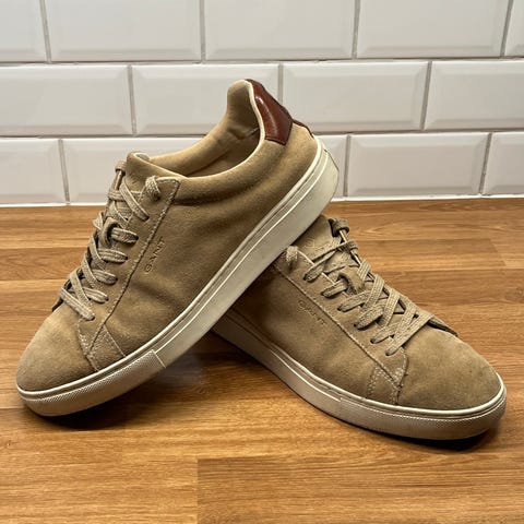 Selger et par brukte Gant Chelsea Boots I semsket skinn, str 43. Farge: Marine.