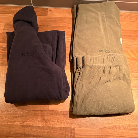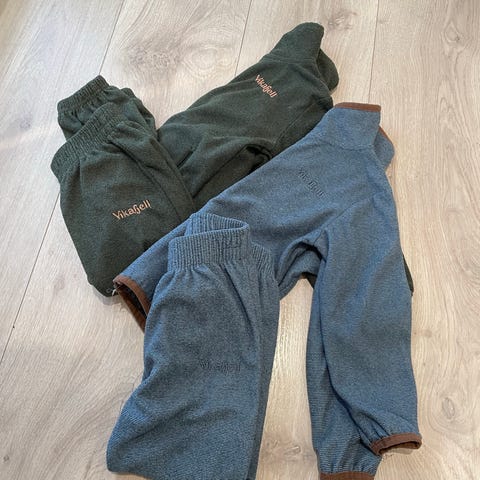 Grønt fleecesett fra Vikafjell og grått sett fra h&m, begge i str 92. Hele og pene.