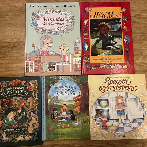 Samling med kjente eventyr. Hardback. Fremstår svært pent brukt. Selges for 50 kroner stykket, men fortrinnsvis 800 kroner samlet.