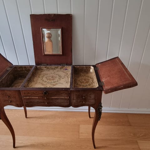 Flott, gammelt bord selges grunnet plassmangel. Liten trebit på skuff er limt.