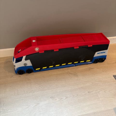 Paw Patrol buss. Den er med lyd, men bakluken er litt knekt så faller for av.