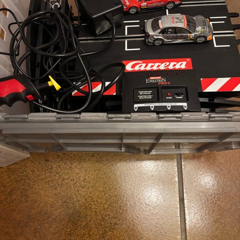 Carrera GO!!! fjernkontroll for bilbane med kabeltilkobling. Kjøpte denne for å erstatte en ødelagt kontroller, men så viste det seg at vi har en eldre modell, så denne passet ikke. Den er med andre ord kun åpnet, og ikke brukt.