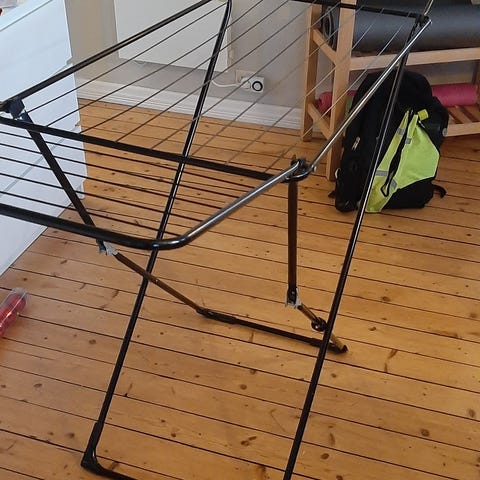 Tre tørkestativ. Passer til tørking av klær og andre tekstiler innendørs. Sammenleggbart design for enkel oppbevaring og transport.