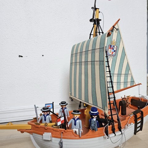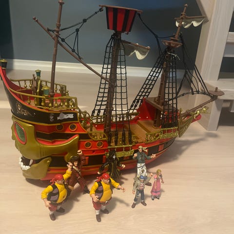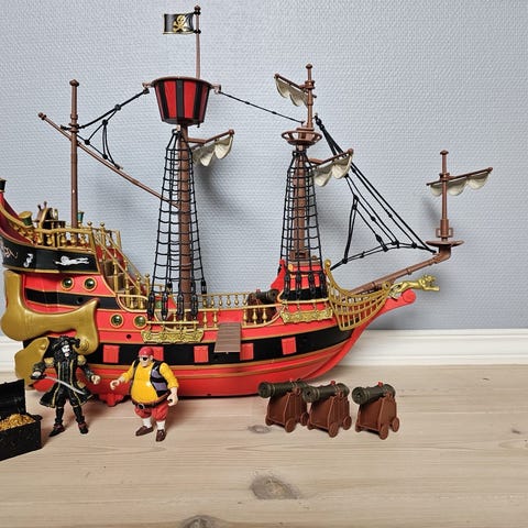 Fin og hel sjørøverskute med mye tilbehør. Bildene er en del av beskrivelsen. Bruker ikke fixferdig. Kan hentes i Sarpsborg eller sendes mot at kjøper betaler frakt.