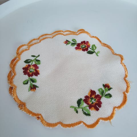 Gamle nostalgiske drikkebrikker. Størrelse 13 cm x 13 cm. Heklet i blå og hvite nyanser. Ingen bruksmerker. Selges samlet.