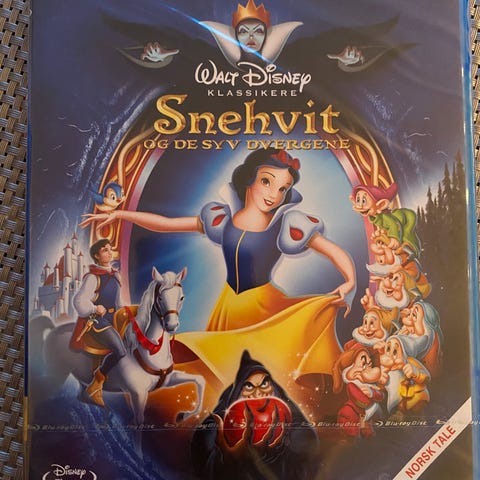 Søkeord: Disney, Snehvit, Snow White, klassiker, Blu-ray, barnefilm, tegnefilm, norsk tale, eventyrfilm, familie, Disneyfilm, samler, Walt Disney