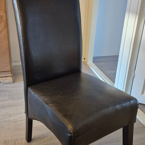 Wanda spisestol PU-Kunstskinn svart med treben svart. Selges da vi tenker å kjøpe nye stoler i lysere treverk./