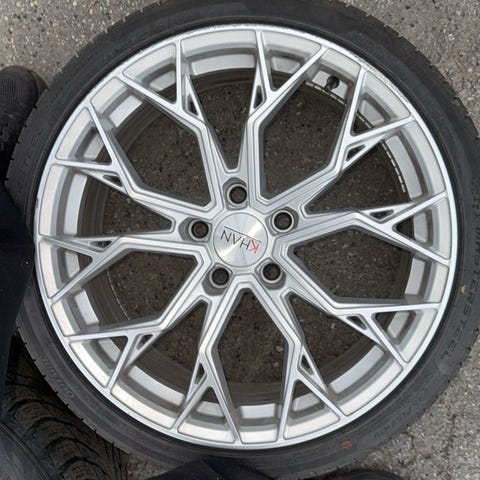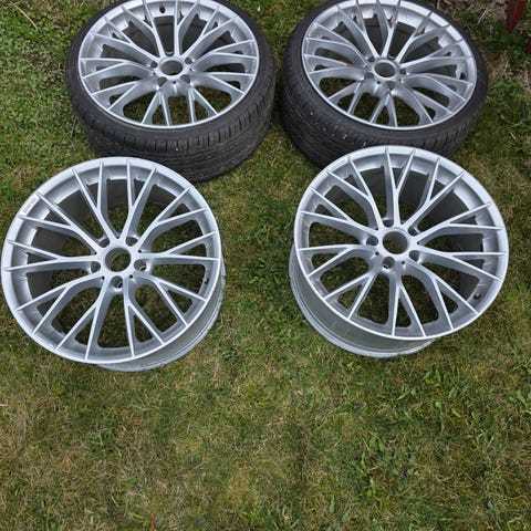 Sett med nye låser og emblemer følger med. Felgene er ikke sparklet eller reparert før lakkering og har ingen mekaniske skader.